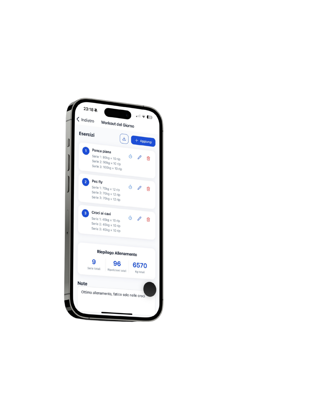 - Tieni traccia di esercizi, serie, ripetizioni e carichi
